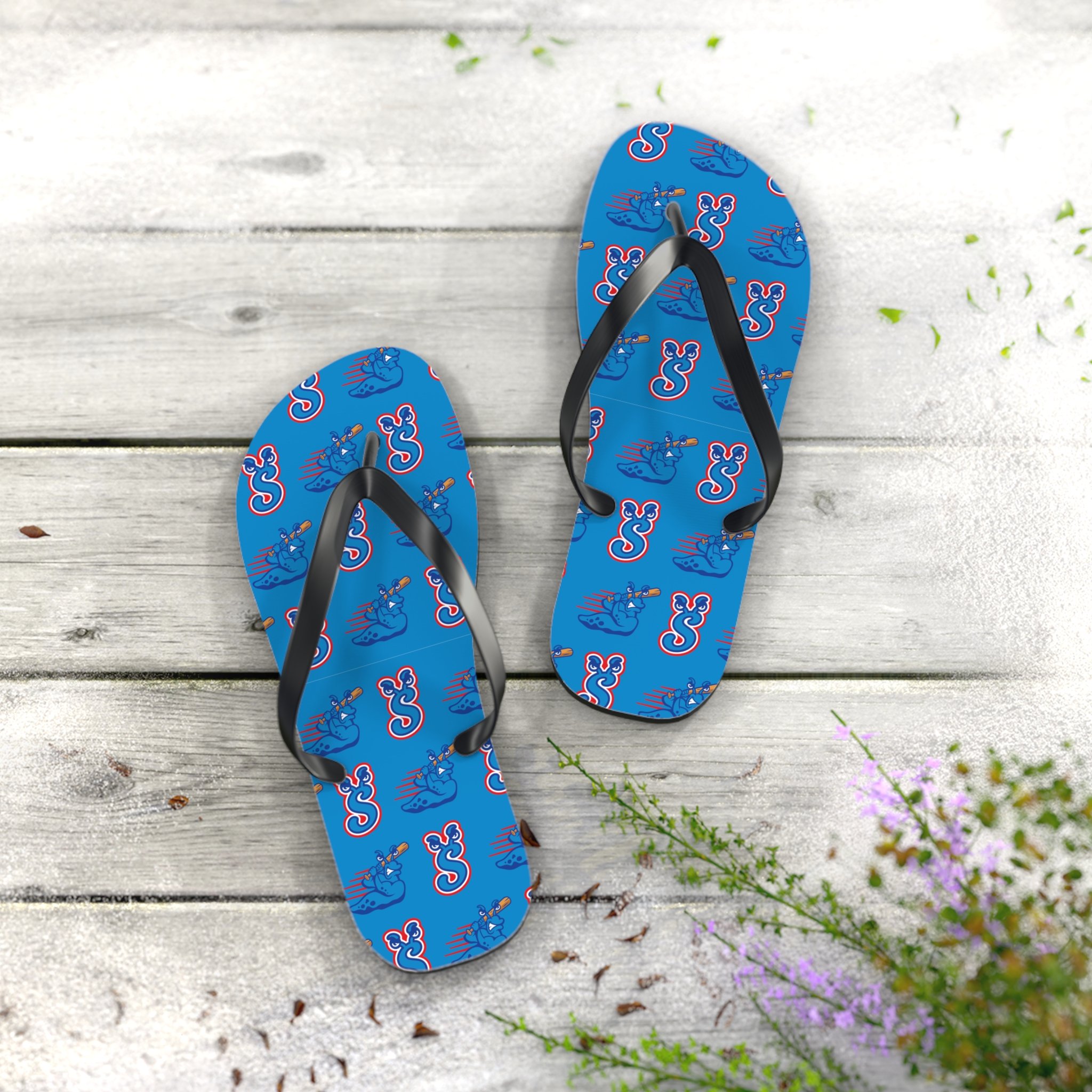 Slugger Flip Flops — Repeating Slugger Logo Beach Sandals